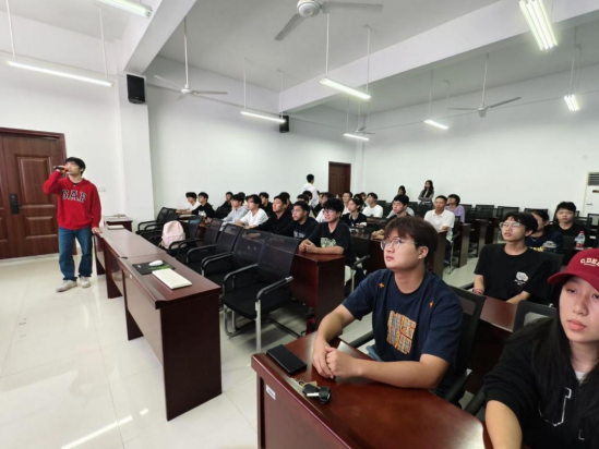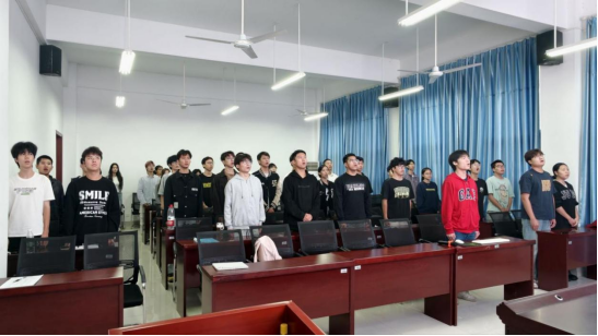 为深入贯彻立德树人根本任务,厚植师生家国情怀与爱校荣校意识,恰逢抗战胜利80周年这一具有特殊历史意义的节点。 2025年10月17日中午12:30,南华大学数理学院于崇德楼108会议室开展唱“ 三歌 ”启动活动,活动参与人员有数理学院学工室主任欧雷、团委书记吴庆林、兼职辅导员苗圣子、团委学生会全体干部。活动旨在通过组织传唱国歌、团歌、校歌(简称“三歌”),搭建师生抒发爱国爱校情感、传承抗战精神与优良传统的平台,进一步增强全院师生的集体