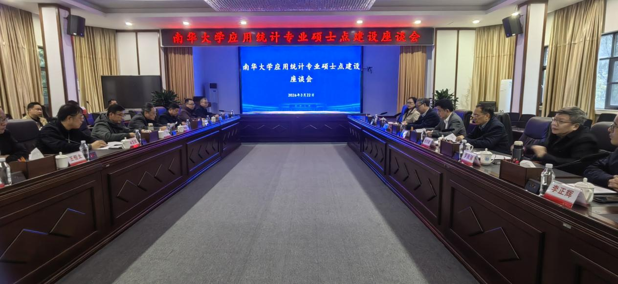 2026年3月22日,南华大学数理学院在红湘校区召开应用统计专业硕士点建设专家咨询座谈会。会议由数理学院党委书记谭建国主持,南华大学副校长于涛出席并致辞。来自国家统计局、西南财经大学、中南财经政法大学、江西财经大学、广州大学等单位的全国应用统计专业学位研究生教育指导委员会委员及权威专家应邀参会,为学校应用统计学科建设建言献策。