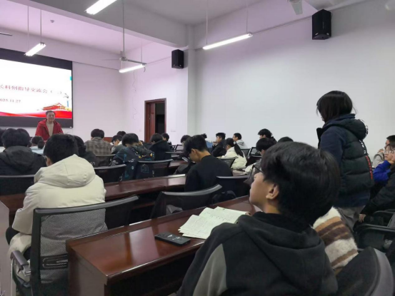 2025年11月27日,为更好地帮助同学们了解科研,培养同学们的科研能力,解决同学们学习中的问题,数理学院在崇德楼108教室组织召开林文斌院长科创指导交流会。主讲人为林文斌院长,辅导员苗圣子老师、24级、25级同学参与交流会。会中林院长与同学们展开深入交流,围绕科研方向,科研成果,问题解决等多个方面进行了系统而细致的指导。